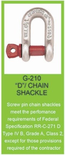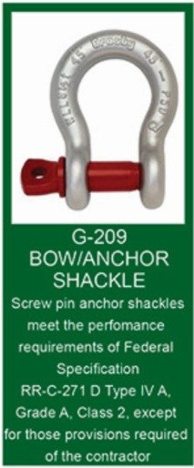 • Shackles can be furnished proof tested with certificates to designated standards, such as ABS, DNV, Lloyds, or other certification. Charges for proof testing and certification available when requested at the time of order.